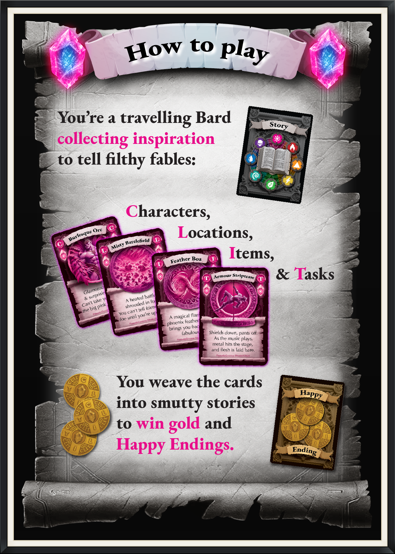 Beholed the Fantasy Storytelling Card Game for Dirty Geeks.